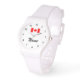 Personalized watch with name and American flag on numbered dial plate print. Cool watches with flag of Canada. Patriotic maple leaf design. Great gift idea for Canada Day. Personalizable with name or other text. Customize for men and women.