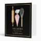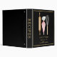 This modern watercolor recipe binder features baking utensils on a black background with gold border and spine. Gold black.