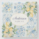 Decorate your kitchen with our Personalized Watercolor Blue Italian Tile Lemon Stone Coaster. Featuring yellow lemon illustrations on Italian tile pattern and script text that can be personalized with your family name. Suitable for your new kitchen accessory and serveware collection.