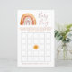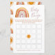 Whimsical boho rainbow and sunshine baby shower "baby bingo" card.
