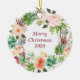 Personalized Watercolor Floral Wreath Ceramic Ornament