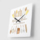 Personalized Watercolor Kitchen Cooking Utensils Square Wall Clock