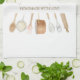 Add charm to your kitchen with this personalized watercolor kitchen towel, featuring wood cooking utensils in elegant script. A gift for chefs and bakers!
