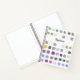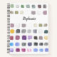 This sketchbook is decorated with a watercolor pattern of color samples in soft muted shades.
