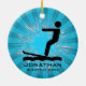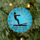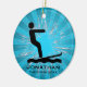 Personalized Waterskiing Ornament Christmas 20xx on a blue starburst background, with customizable text.