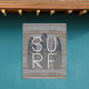 This trio of surfboards on a driftwood background with the word, "SURF," has that signature worn and weathered beach look. It incorporates a lot of cooler shades like blues and grays but has subtle warmth to it with some tans, browns, and oranges. I love the "just off the beach" feeling it conveys. You can almost feel the sand stuck to your feet and surfboard under arm, completely shattered after ripping it up all day. You may also personalize the text if desired to fit your needs. Perfect for your beach house decor, beach theme, or surfer!