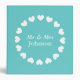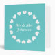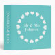 Personalized wedding binder | Turquoise blue and white hearts. Custom name design with name of bride and groom. Mr and Mrs marriage day organizer / photo album. Romantic design.