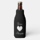Personalized wedding can cooler for groomsman. Custom classy black and white wedding bottle holders with cute heart. Classy design with name or monogram letters. Romantic love symbol design. Make one for with for team groom, groomsmen, best man, ring bearer etc. Create your own cosy wedding favor / souvenir for guests at your party. Romantic theme beverage holder design. Perfect for alcoholic drinks like beer. Also available for cans. Elegant script typography. Custom background color. Custom double sided cozy cooler for chic wedding, fancy bridal party, funny bachelor party etc.
