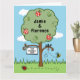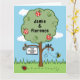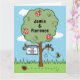 A sweet greetings card to celebrate a wedding, which can be personalized. The card features a colorful garden scene with an apple tree, a bumblebee buzzing around and a ladybird scuttling on the ground.