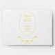 Add an elegant touch to your wedding invites with this personalized wedding envelope. Gold rose design and font. The front has "Save the Date," along with the names of the wedding couple and the date of the marriage. Use the template to personalize.