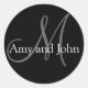 Personalized Wedding Favour Stickers Design By Elke Clarke ©2009. More designs at WhiteWhimsicalWeddings.com and WhiteWhimsicalWeddngs.blogspot.com. The design is simple yet classic and fits with any invitation and wedding theme. THE MONOGRAM GALLERY allows you to customize the names, monogram and colors of this sticker. Just click on the "CUSTOMIZE" button and follow the prompts.