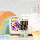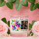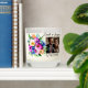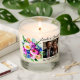 Add a picture, names, wedding date and quote to this pretty watercolor flowers in purple and coral white candle.