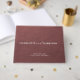 A simple elegant couple's wedding name monogram with date and location, on a camel colored faux leather effect background. Simple classic elegance. Wedding guest signing keepsake book. Elegant ancient serif type modeled on Roman engraving style, with script ampersand.
