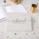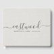 A trendy modern and elegant minimalist couple's name monogram in vintage serif type, contrasted with a handwritten style script font on a white faux linen effect background. Elegant wedding guest book for newlyweds. Blending vintage and modern styles.