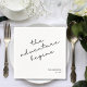 Create a memorable wedding cocktail reception with these personalized napkins featuring the phrase 'The Adventure Begins' in minimalist script. These black and white napkins are perfect for adding a touch of elegance to your special day. Customize with your names and wedding date to make them truly unique. These napkins are a beautiful addition to any wedding reception decor.