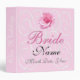Personalized Wedding Organizer Binder with NAME and Wedding DATE typed into the Two Text Box Templates. Beautiful Pink Bridal Planner Binder with White Scroll Swirls, lovely glassy look "Bride" and Name and Wedding Date below. Wonderful Gift for newly engaged bride.
