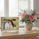 Capture the magic of your special day with our Personalized Wedding Photo Acrylic Block. This stunning keepsake transforms your favorite wedding portrait into a freestanding piece of modern art. Featuring a delicate, golden-hued leaf and floral border, this design elegantly frames the happy couple while adding a touch of natural beauty to your home decor.