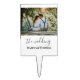 The design has white rectangular frame on the lower side and modern calligraphy texts which can be customized to your preference. Replace the picture in the center with your own wedding photo. It will make a lovely custom made wedding cake topper on your wedding day.