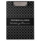 Personalized wedding planner clipboard. Personalized emblem with monogram initial letter or name. Elegant quatrefoil pattern design.