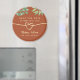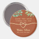 Rustic, modern, elegant, simple burnt orange terracotta wedding save the date invitation magnet with watercolor greenery and faux gold rope heart.
