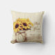 Add the bride and groom's names and wedding date to this Rustic Country Sunflowers Mason Jar Throw Pillow with a barn wood background and a painted mason jar with twine bow and sunflower flower bouquet. These are great for a country wedding keepsake throw pillow.