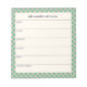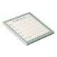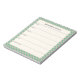 A stylish personalized weekly planner notepad with a mint green checkered geometric border.