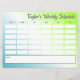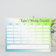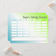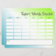 Personalized Weekly Schedule / School Timetable features a template divided into 6 rows and 6 columns (first is TIME, followed by days of the week MON to FRI), and a large rectangular shape for additional notes below. A simple, yet modern gradient background in blue, white, and green makes it perfect for students of all ages/genders.