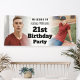 Modern 21st birthday party welcome sign for men. Personalized banner with a modern 2-photo collage and bold letters. For inside or outside use. To change the photo placement: click on the button to customize the design, click on "crop", and move the image to center it.