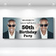 Modern 50th birthday party welcome sign for men. Personalized banner with a modern 2-photo collage and bold letters. For inside or outside use. To change the photo placement: click on the button to customize the design, click on "crop", and move the image to center it.