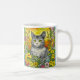 Pretty colorful whimsical cat and flowers yellow floral coffee mug. Ai cat and flowers. Add name or family member in personalize area.