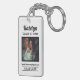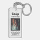 Modern personalized graduation keychain design features a square photo of the graduate framed in black with simple and classic custom first name, class year, and school name wording that can be personalized. White background can be modified to coordinate with school or photo colors.