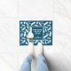 Personalized White Duck and Feathers Navy Blue Doormat