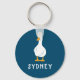 Personalized White Duck Illustration Navy Blue Keychain