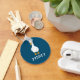 Create a cute small gift for fans of ducks with this personalized keychain. The round, navy blue keychain features an illustration of a white duck with orange bill and feet in a simple realistic style and your own name or short message below in fun white lettering.