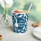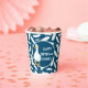 These custom message paper party cups are perfect for duck-themed birthday parties and other special events. The feature a cute but realistic illustration of a white duck with orange bill and feet against a navy blue background with your message in fun white lettering. The background of the cup has a pattern of white duck feathers against a navy blue background.