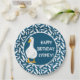 These custom message paper party plates are perfect for duck-themed birthday parties and other special events. The feature a cute but realistic illustration of a white duck with orange bill and feet against a navy blue background with your message in fun white lettering. The outer rim of the plate has a pattern of white duck feathers against a navy blue background.