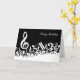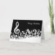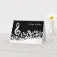 An ideal birthday card for the music lover or musician with an eye-catching modern design featuring white jumbled musical notes and a large treble clef on a classical black background. The design includes customizable text for a name or text of your choice to create a unique and personalized music gift.