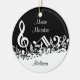Personalized White Jumbled Musical Notes on Black Ceramic Ornament