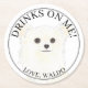 Personalized White Long Haired Chihuahua Wedding Round Paper Coaster
