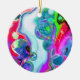 Personalized Pretty colorful pour painting pink, purple, red, blue and lime green fluid art Christmas ornament.