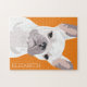 Personalized pop art french bulldog puzzle featuring a cute white frenchie on a deep orange background that can be changed to any color, and your name.