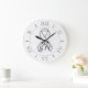 A line of text and a monogram you can edit easily for a unique gift idea. A silver chrome style white ribbon awareness in white on white subtle checkered print decor on a clock face.