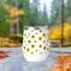 Brighten up your beverage game with this charming custom tumbler featuring a playful scattered sunflower pattern. Set against a crisp white background, the cheerful yellow blooms create a fresh and airy aesthetic that is perfect for any season. The center features a stylish golden brushstroke accent where you can add a custom name in elegant script, making it a truly personal accessory. Its compact, curved design is comfortable to hold and fits beautifully into a modern, botanical-inspired lifestyle, whether you're at home or on the go.