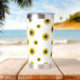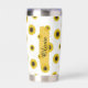 Infuse your day with a burst of floral joy using this sleek thermal tumbler, adorned with a whimsical scattered sunflower pattern. The bright yellow blossoms pop against a clean white background, offering a fresh, minimalist aesthetic that feels both modern and timeless. A beautiful golden-yellow brushstroke detail serves as the backdrop for your custom name, rendered in an elegant flowing script. Designed with a tall, slender profile, this 20oz vessel is the perfect combination of style and capacity for anyone who wants to carry a bit of sunshine wherever they go.