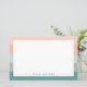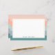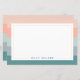 Chic stationery paper has wide stripes in a calming color palette in the background on the front and on the back. Front has a large white area for writing your notes and a thin gold tone border with custom name in a darker powder blue.