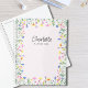 This pretty pink planner is decorated with delicate hand-drawn wildflowers in pastel shades.