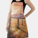 Cook, paint, or garden in style with this romantic apron of a sunset landscape, showcasing pink, yellow, and blue wildflowers by a vine-covered fence, with purple mountains. Add your name or message for a fun, custom kitchen touch, ideal for nature enthusiasts.
