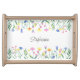 This stylish serving tray is decorated with hand-drawn wildflowers and stylish script typography,
