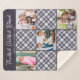 Personalized Winter Blue Gray Plaid Photo Collage Sherpa Blanket