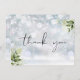 Featuring delicate watercolor greenery and elegant script thank-you on a winter snowflakes background. You can personalize with your own thank you message on the reverse, or if you prefer to add your handwritten message, delete the text. A perfect way to say thank you! Designed by Thisisnotme©